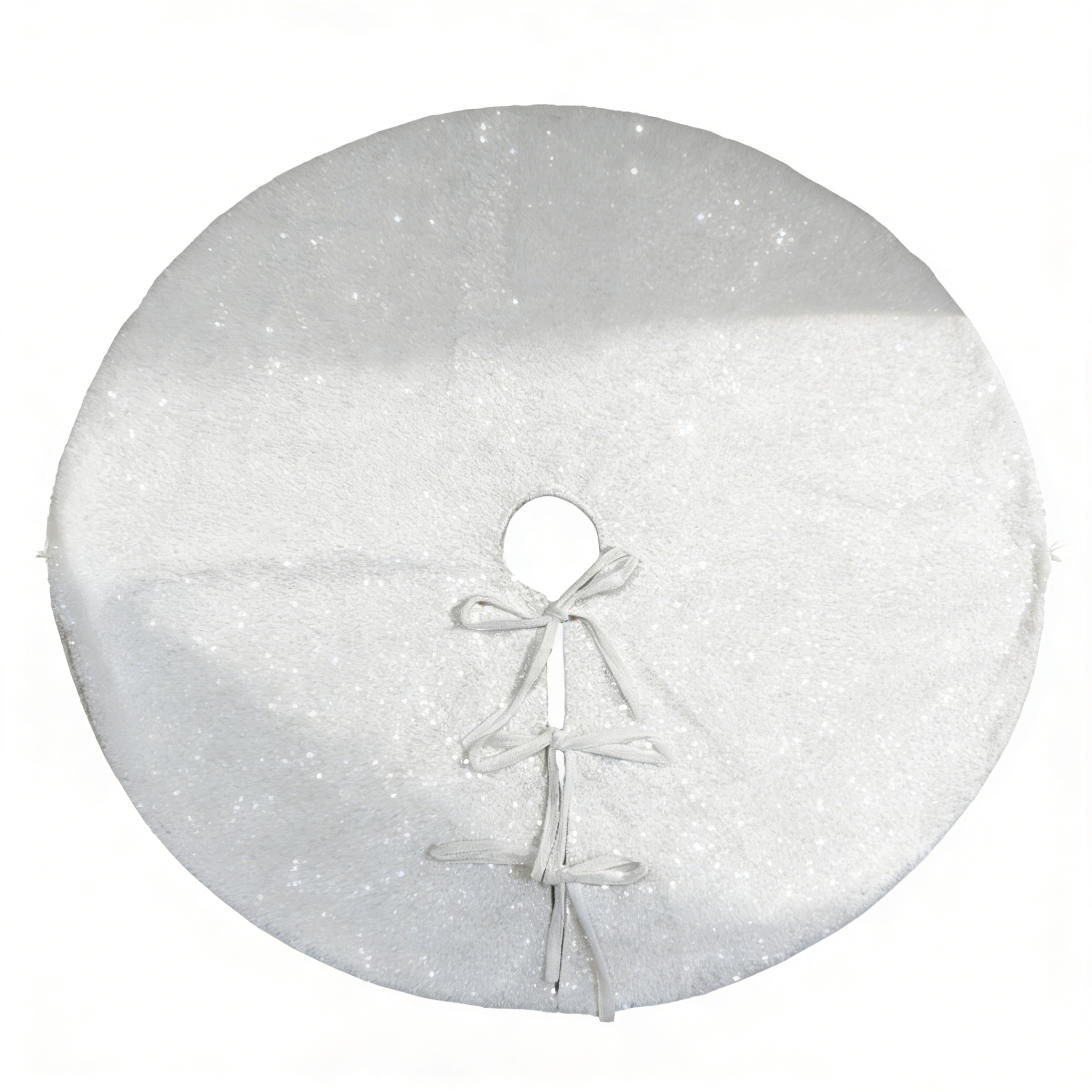 42 inch christmas tree skirt red sparkling sequin fabric with 3d bow knots, double layer, velcro closure for indoor/outdoor decor (copy)Tie-Your-Own-Bow 42″ White Sparkling Sequin Christmas Tree Skirt – Double Layer Festive Mat, Interactive Holiday Decor
