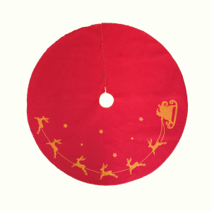Elevate your decor with our timeless design. Featuring a vibrant red background adorned with elegant golden reindeer, this Reindeer Red Xmas tree skirt radiates warmth and festive luxury, creating an instant focal point for your winter decorations.