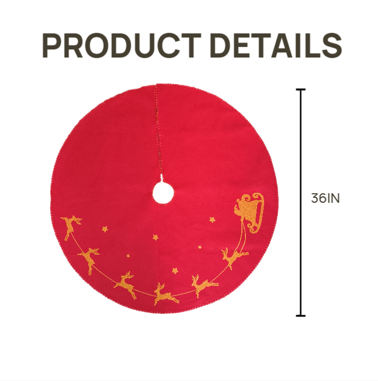 Complete Your Holiday Vision: 36″ Red & Gold Reindeer Tree Skirt with Easy Velcro – Premium Non-Woven, Custom Orders Welcome
