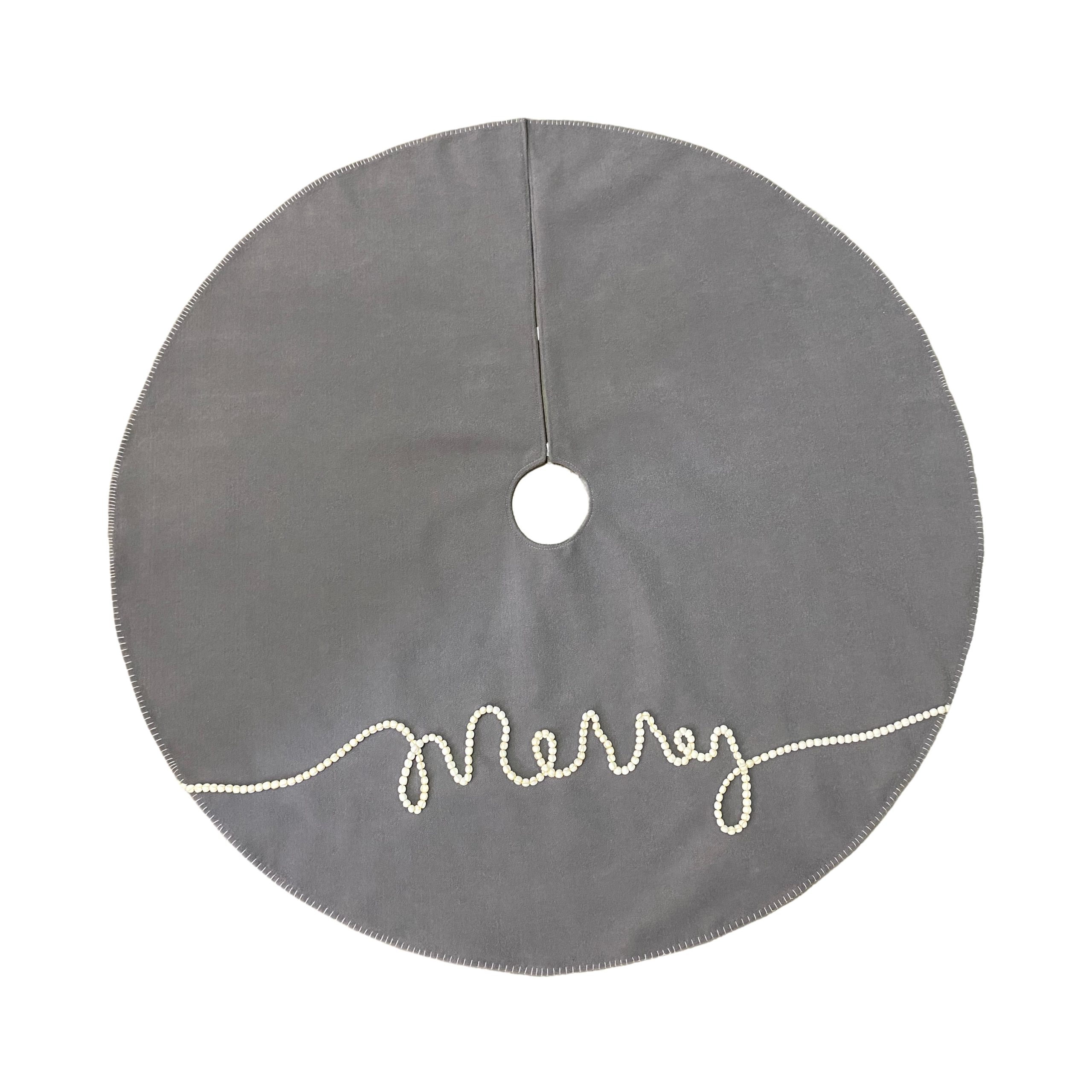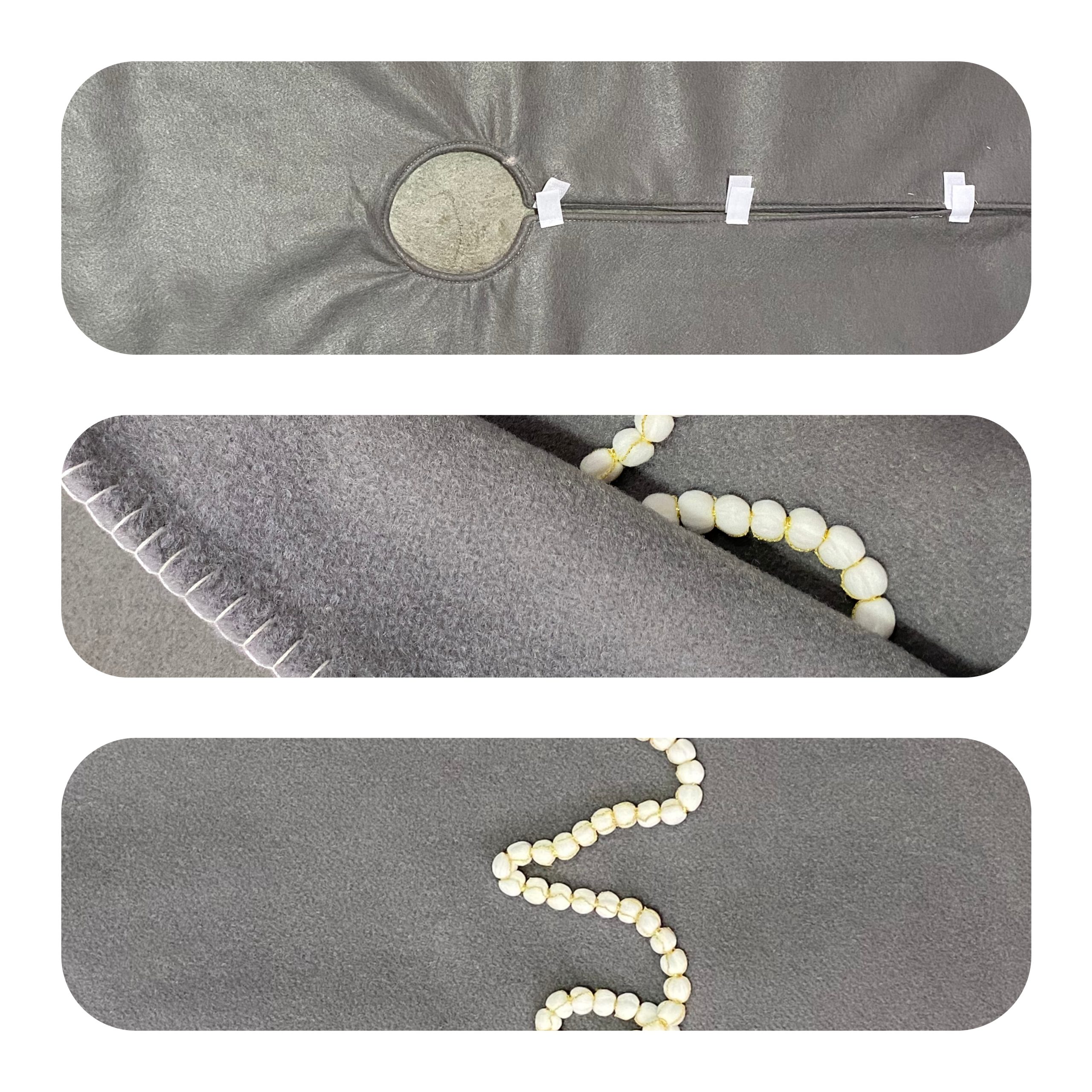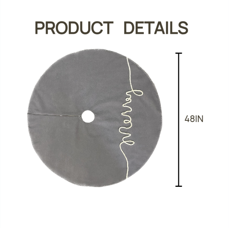 This large Grey Christmas tree skirt is meticulously crafted with double-layer non-woven fabric for superior durability. Choose between two premium stitching details: elegant Gold-Edge Stitching for a classic luxe look, or modern White Contrast Stitching using durable #606 heavyweight thread. Each piece embodies high-quality construction that lasts for seasons.